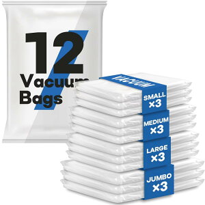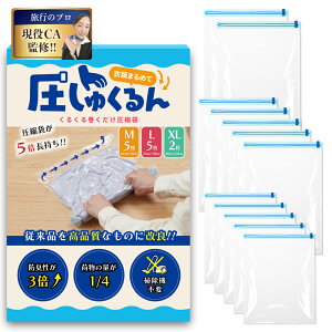 圧縮袋 衣類圧縮袋 M・L各5枚+XL2枚=12枚組 掃除機不要 防塵 防湿 防虫 防カビ 繰り返し使用出来 衣替え収納/旅行/引越し/出張/家庭用ブランド色透明モデル100140017商品説明【商品概要】【サイズ】:...
