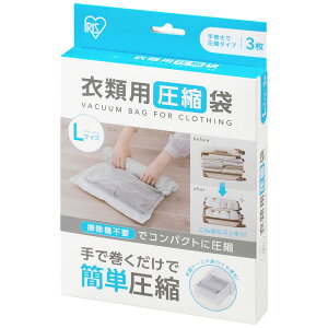 旅行に便利な衣類圧縮袋【Lサイズ】手で巻くだけで、簡単に空気を抜くことができる衣類圧縮袋。2枚入。ワイシャツやセーターなどのインナーにオススメのLサイズです。しっかり空気が抜ける設計空気が逆戻りしない逆止弁を採用...