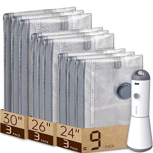 【送料無料】圧縮袋 旅行 旅行用圧縮袋 衣 類 圧 縮 袋 掃除機不要 充電式ポンプ付き 9枚入 40*50*3枚/40*60*3枚/50*60*3枚 真空袋 再利用可能 省スペース あっしゅく袋 防水...