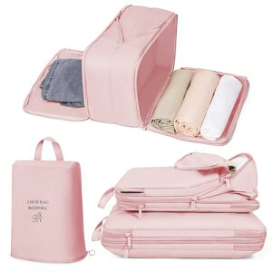 ■商品説明■ トラベルポーチ 圧縮 両面収納 4点セット 旅行用圧縮袋 大容量 スーツケース 衣類仕分け 旅行用 出張 衣類 整理 便利グッズ ピンク 【収納力抜群・両側ポケット仕様】ファスナーで圧縮することで...