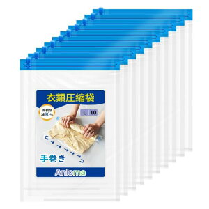 Anloma 衣類圧縮袋 圧縮袋 旅行 10枚組(35x50cm 10枚) 掃除機不要 手巻き 真空あっしゅく袋 衣類収納 出張 修学旅行 家族旅行 防塵 防湿 防虫 省スペース 再利用可能 【衣類を最大80%圧縮します...