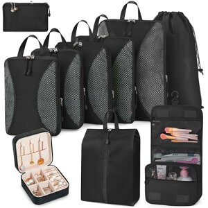 トラベルポーチ 圧縮 10点セット 旅行用ポーチ トラベル 圧縮ポーチ 旅行用圧縮袋 パッキングポーチ スペース節約 スーツケース 衣類仕分け収納 軽量 中身が見える 出張 旅行 便利グッズ ブラック 【スペース節約...