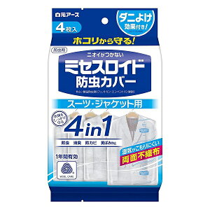 ムシューダ 防虫カバー スーツ・ジャケット用 1年防虫4枚入ブランド:ムシューダ販売・製造元:エステー1年間の防虫効果で大切な衣類を虫・ホコリから守るカバータイプの防虫剤です。不織布使用のため通気性に優れ、UVカット特殊フィ