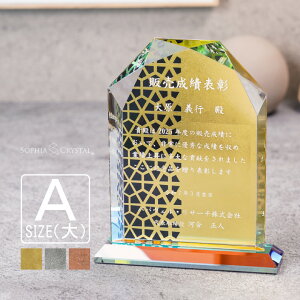 金/銀の文字と美しいデザインが上品に輝く、漆黒の表彰盾です。周年記念や社内表彰、取引先表彰、認定証、感謝状などに人気です。 記念品・ソフィアクリスタル
