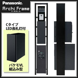 パナソニック エントランスポール アーキフレーム Jタイプ 小包ポスト パケモ-UFプラン LED表札灯付 コンボ 宅配ボックス 取付穴なし インターホン別売