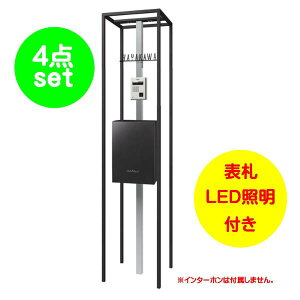 【機能門柱】ショーケース エントランスユニット 4点セット カラー 【本体】フロストブラック 【ポスト本体】ブラック 【化粧カバー】フロストブラック 【ネーム部】ブ