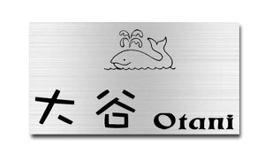 戸建ての家にも十分な大きさですくじらがエッチングされた表札です!波にゆられてる潮吹きくじら♪かわいいくじらが玄関でお出迎え!どこにもないデザインで、オリジナル表札をつくりませんか!高級ヘアラインで