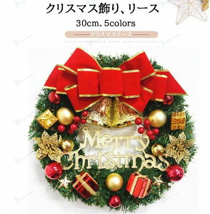 クリスマスリース/ドア飾りリボン/30cmクリスマス飾り ボンボン/玄関飾りおしゃれ 壁掛け 店舗用 ご自宅用 法人用 christmas 装飾