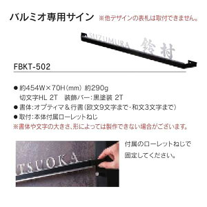 機能性門柱バルミオ専用サイン ・約454W×70H(mm) 約290g 切文字HL 2T 装飾バー:黒塗装 2T ・書体:オプティマ&行書(欧文9文字まで・和文3文字まで) ・取付:本体付属ローレットねじ ※書体や文字の大きさ、形...