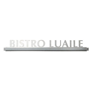 【型番】IR-221 【サイズ】約350W×100H(mm) 【重量】約210g 【材質】真鍮 黒塗装仕上 レーザーカット切文字 【書体】手描き風文字 【取付】ボルト付 【備考】鉄のように赤サビで壁が汚れる心配がない真鍮を素材に使用...