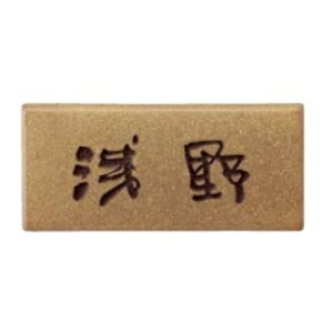 伊羅保釉で彩色した趣のあるデザインで、大好評の戯遊詩画人「泉椿魚」氏揮毫の椿魚書体が標準仕様の表札です。 縁起の良い浮き出し文字(凸文字)表札は全国でも珍しく、川田美術