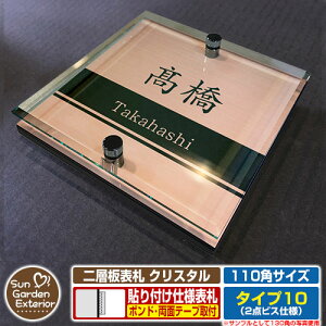 機能ポールや平らな面に貼るだけで使える便利な表札! アクリル表札 ネームプレート 二層板表札 クリスタル Type10:2点ビス仕様【110×110mm】。サイズ W110×H110×T26mm 約190g...