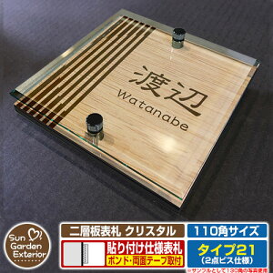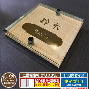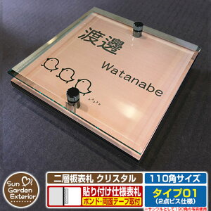機能ポールや平らな面に貼るだけで使える便利な表札! アクリル表札 ネームプレート 二層板表札 クリスタル Type18:2点ビス仕様【110×110mm】。サイズ W110×H110×T26mm 約190g...