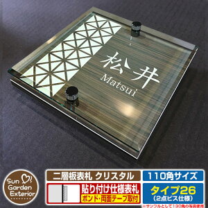 アクリル表札 ネームプレート 二層板表札 クリスタル Type26:2点ビス仕様【110×110mm】 人気の機能門柱や平らな面に貼って使える便利な表札! サイズ W110×H110×T26mm 約190g