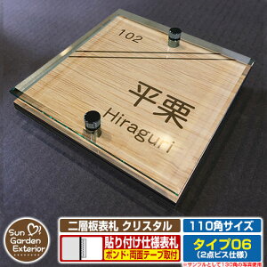 機能ポールや平らな面に貼るだけで使える便利な表札! アクリル表札 ネームプレート 二層板表札 クリスタル Type08:2点ビス仕様【110×110mm】。サイズ W110×H110×T26mm 約190g...