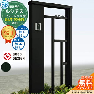 YKKap 機能門柱 ルシアス ウォールNE03型 W08 表札灯タイプ(100V照明) 正面パネル【ポスト加工なし / インターホン加工なし】 存在感のあるウォール型の機能門柱! 販売条件 ◆詳しくはこちらをご確認ください...