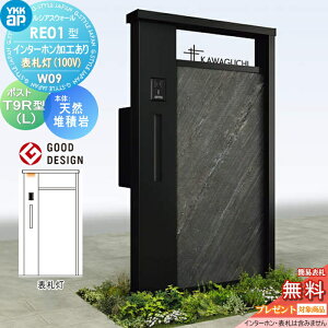 細商品名【無料プレゼント対象商品】 門柱 ポスト 一体 YKK YKKap ルシアスウォール RE01型 W09 表札灯タイプ(100V) パネル:天然堆積岩 アルミカラー ポスト T9R(L)型 ポスト加工付き インターホン加工付き...