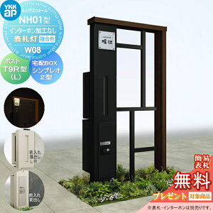 YKKap 機能門柱 ルシアス ウォールNH02型 W08 表札灯タイプ(100V照明) T9型・宅配ボックスセット 正面パネル【ポスト加工付き / 宅配加工付き / インターホン加工付き】 存在感の...