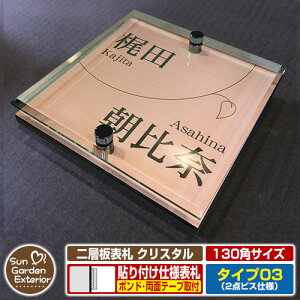 アクリル表札 ネームプレート 二層板表札 クリスタル Type03:2点ビス仕様【130×130mm】 サイズ W130×H130×T26mm 約250g 仕様 表札(取付可能場所:郵便ポスト・機能門柱...