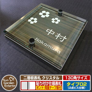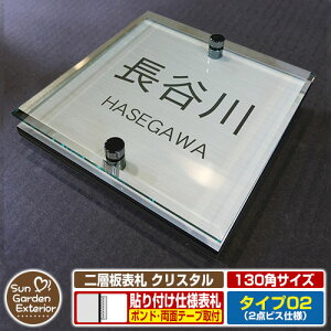 アクリル表札 ネームプレート 二層板表札 クリスタル Type25:2点ビス仕様【130×130mm】 サイズ W130×H130×T26mm 約250g 仕様 表札(取付可能場所:郵便ポスト・機能門柱...