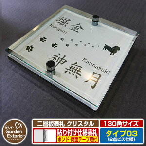 アクリル表札 ネームプレート 二層板表札 クリスタル Type03:2点ビス仕様【130×130mm】 サイズ W130×H130×T26mm 約250g 仕様 表札(取付可能場所:郵便ポスト・機能門柱...