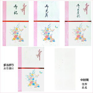 【特長】和紙・大礼紙に「友禅模様」と「のし」を印刷。御出産祝・御祝・御見舞・字なしの4種類をピンク系とグリーン系の2パターンご用意しました。 ■【材質】和紙 大礼紙・水引飾り ■サイズ:105×180mm/各種5枚組 ■中封筒(内袋:住所/