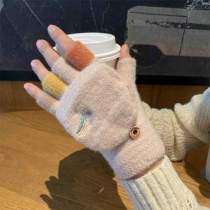 サイズ: フリー 性別: レディース カラー: ベージュ.グレー.ピンク.ブルー.ネイビー デザイン: レインボーフラップ付き 手袋タイプ: ハーフフィンガー