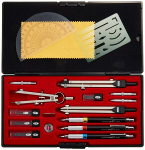【セット内容】13品(穂替コンパス 大型 烏口、穂替コンパス 大型 鉛筆、デバイダー 大型、 穂替スプリングコンパス 鉛筆、替柄、ホンセンター、ドライバー、 2.0mm芯、0.5mm芯、ノック式アタッチメン...