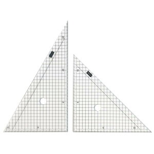 左右両メモリで左利きも見やすい端ゼロメモリで理解しやすい。メモリに矢印やブロックごとに色付けしてあるので見やすい。エコマーク再生ペット100%使用で、折り曲げても割れずらいので安全●外寸法/直角二等辺三角形121×85×85×1mm、直