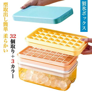 2023新型 製氷皿 製氷器 シリコン 大容量 32/64個取り アイストレー 製氷機 収納ボックス 一部おしゃれ 蓋付き 取り出し簡単 柔らかい 角氷 飲み物作り