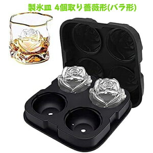 製氷器 製氷皿 バラ型 薔薇型 ローズ型 4個取り シリコン アイスボール 大きい氷 取り出しやすい