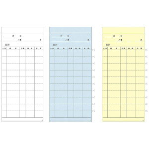 【商品説明】●1冊:50組(3枚複写/1、2枚目ミシン10本入)●サイズ:幅94×縦210mm●材質:ノーカーボン●色:1枚目/クリーム、2枚目/アサギ、3枚目/白●5冊シュリンク