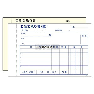 ゴ注文承リ書 2枚複写 FD-01 (50組5冊入) ●お弁当屋、ケーキ屋さん使用の注文請書 ●5冊入り 製品仕様 ●型番:FD-01 ●商品ブランドシリーズ:ケイエスコッピ印刷 ●品名情報分解1 物:伝票 ●外寸:149×91/...