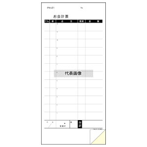 商品の特徴 複写会計伝票 PN-21 2P500組 箱入 ●複写ミシン目入り伝票。お客さまのオーダーが一度で決まらず追加オーダーが多い場合や厨房と客席が離れている場合に使用します。居酒屋、焼肉店、レストランなど...