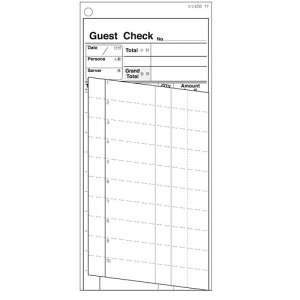 2枚複写 300組です。 【外寸】84×184mm ※1枚目にミシン目6本入り ■複写会計伝票(天糊) お客さまのオーダーが一度で決まらず追加オーダーが多い場合や 厨房と客席が離れている場合に使用します...