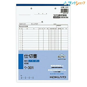 コクヨ 仕切書 NC複写 ノーカーボン ウ-301 B5縦型 20行 40組 2枚複写 手書き伝票 複写簿 複写式伝票 記帳用紙 伝票用紙 バインダー対応 軽減税率対応 インボイス対応サイズH263×...
