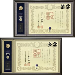 【材質】 桜材 【外寸法】 大・重光章額 580mm×940mm×55mm 小・褒章額 524mm×862mm×55mm 【勲記寸法】 叙勲 420mm×595mm 褒章364×515mm 【商品解説】...
