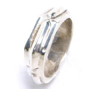 六角形のシルバーリングのセンター部分に背骨をモチーフにした秀逸なデザインをセットしたシルバーリングです。 滑らかさのある個性的なシンプルリングはペアリングにも最適なシルバーリングです。 男女を問わないユニセックスなシル