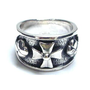 磔にされた2体のスカルが指に絡みつくスカルリング(髑髏リング)です。 細部にいたるまでほどこされた繊細なスカルと立体感が程よい存在感を放ちシルバーリングです。磔にされた髑髏の表情がとても悲しげなスカルリングはチョット不気味