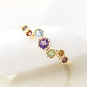 地金K10YG(10金イエローゴールド) K10PG(10金ピンクゴールド) K10WG(10金ホワイトゴールド) リング内側に素材刻印あり石左から アイオライト→ガーネット→ブルートパーズ→アメジスト→ペリドット→シトリン→ロードラ...