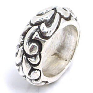 肉厚で重厚感のある甲丸のボディにいくつもの波をアシンメトリーにデザインした芸術的なシルバーリングです。 これ一本だけでも十分にコーディネイトの主役に出来るスクロールリングです。 肉厚なボディとアーティステックなデザイン