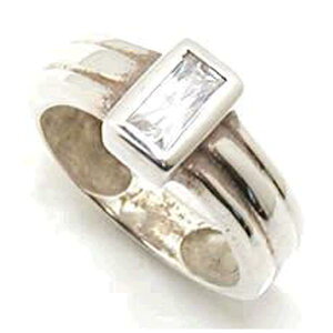 肉厚でシンプルなシルバーリングのトップにスクエアカットされたクリスタルのキュービックジルコニアをセットしたジュエリー。 シルバーリングに2本のラインを刻むことでスタイリッシュに仕上げたジュエルリングはとても綺麗。キュー