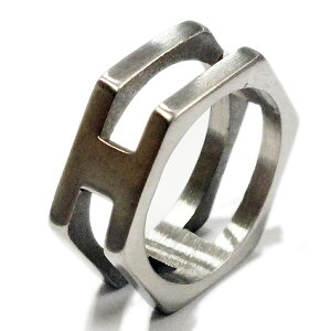マットなツヤケシ港した六角形の指輪を2本つなげて2連リングのように仕上げたお洒落でシンプル綺麗なサージカルステンレス316L製の指輪です。 見る角度によってアルファベットのHの文字に見える高級ブランドのような男性からも女性から