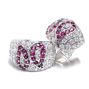ふっくらとした甲丸リングに水の流れのような綺麗なラインでクリスタルのキュービックジルコニアを並べ、シズク型に赤紫のキュービックジルコニアを配置した綺麗なジュエリーリング。 柔らかで丸みのあるデザインとフォルムに裏打ちさ