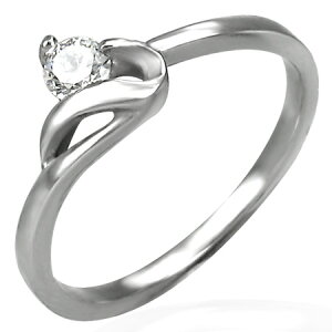 ダイヤモンドのような輝きを放つクリスタルのキュービックジルコニアを立て爪で固定した高級感のあるステンレスリング。婚約指輪(エンゲージリング)のような高級感のあるステンレスリングはプレゼントやピンキーリングにも最適!丈
