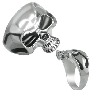 人気のアゴなしスカルリング。ハード系のコーディネートには欠かせないドクロをモチーフにしたスカルリングは、男女を問わず人気が高い!丈夫で半永久的な輝きを見せてくれる高級感のあるステンレスリングは、毎日の普段使いから、フ