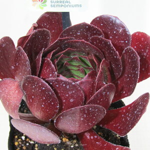 センポニウムはアエオニウム(黒法師)×センペルビウムの世界初の交配種。アエオニウムの美しい草姿と、センペルビウムの丈夫さを兼ね備えています。庭、ロックガーデン、バルコニーやテラスに最適です。 デスティニーの葉脈の入った
