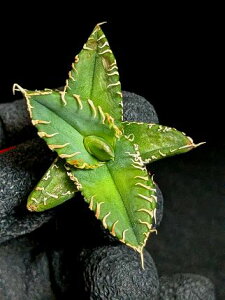 高級品種のジャガーノートと白犀牛のような特徴を併せ持つ、オリジナリティが非常に高いアガベです。 鋸歯の突出が少なく、主刺から副刺までがスムースな形状になっています。 成長するにつれて鋸歯が厚くなっていくことが特徴です...