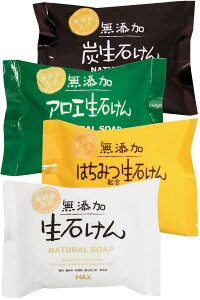 生石けんシリーズ】生石けん80g×1個、炭生石けん80g×1個、はちみつ配合生石けん80g×1個、アロエ生石けん80g×1個 製造国:日本製 [香料、着色料、防腐剤、酸化防止剤 不使用]【石けん本来の優しい