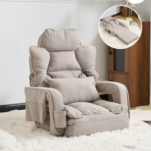 ソファベッドにもなる肘付き座椅子。コンパクトサイズに折り畳んで収納可能。枕にもなるランバーサポート付属。生地にはふわふわなボア生地を採用。背もたれは14段階で角度調節可能。日本メーカー向陽技研製ギアを採用...